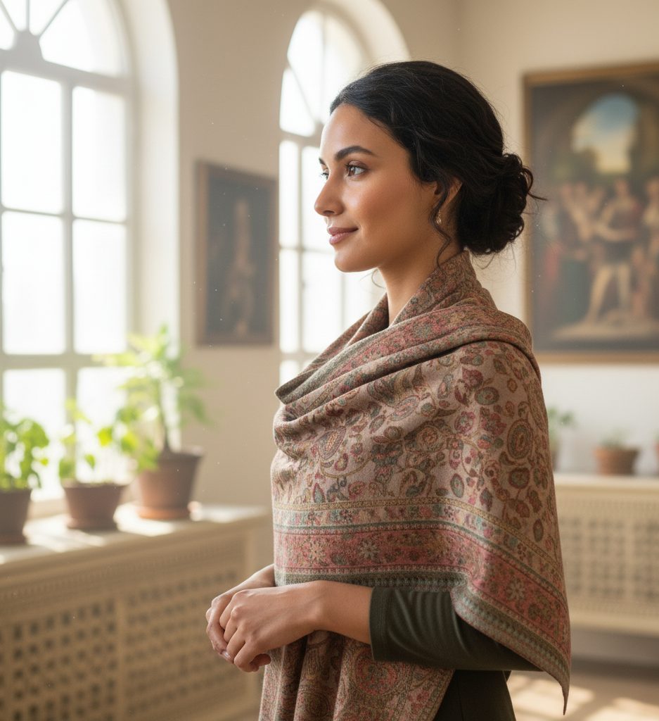 As one of the leading Shawl Manufacturers, Savita Shawls brings you authentic designs that blend cultural tradition with modern sophistication. Elevate your winter collection with this stunning Pashmina Shawl, designed to add a touch of royal charm and warmth to your style.