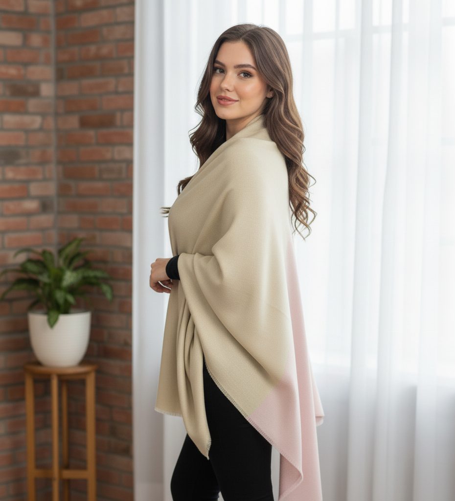 Wrap yourself in understated elegance with the Beige & Soft Pink Wool Natural Ombre Pashmina Shawl from Savita Shawls. This graceful creation combines soothing beige and blush pink tones in a flawless ombre blend, adding warmth and sophistication to every outfit.