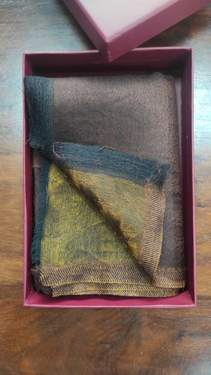 Elevate your winter wardrobe with this luxurious shawl from Savita Shawls, a reputed winter wear shawls manufacturer known for timeless elegance and premium craftsmanship. Made from a rich blend of 85% wool and 15% silk, this shawl offers unbeatable warmth, softness, and a gentle sheen. Measuring 70×200 cm, it features a deep brown base with golden and earthy undertones, exuding a rustic charm that pairs beautifully with both ethnic and western outfits. Ideal for cold-weather outings or festive gatherings, this finely woven shawl is a true testament to Savita Shawls’ heritage of quality and design excellence.