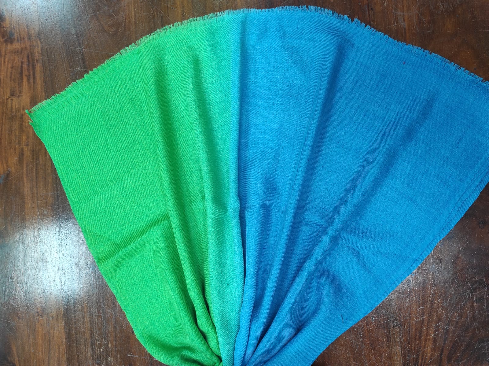 Elevate your winter wardrobe with the Green & Blue Wool Natural Ombre Pashmina Shawl from Savita Shawls. Crafted with care and perfection, this luxurious Pashmina Shawl blends fresh green and calming blue tones in a seamless ombre transition, reflecting elegance, warmth, and modern charm.