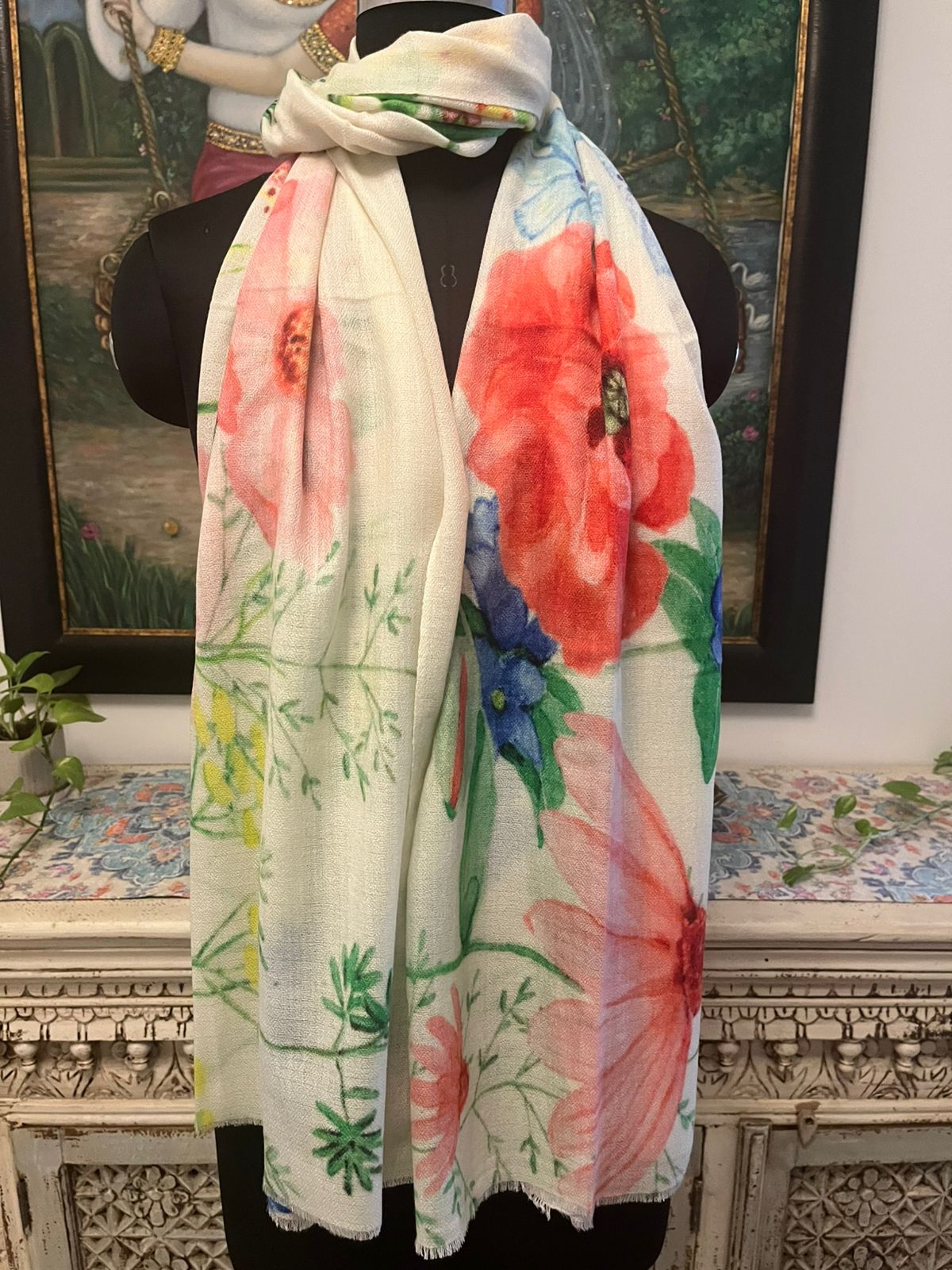 Wrap yourself in luxury and charm with the Pashmina Shawls collection by Savita Shawls. This exquisite ivory wool shawl features a stunning digital floral print with vibrant shades of red, pink, blue, and green—capturing the essence of blooming elegance. Soft to touch and warm to wear, this pashmina shawl is perfect for every occasion—be it festive celebrations, casual gatherings, or elegant evening outings.