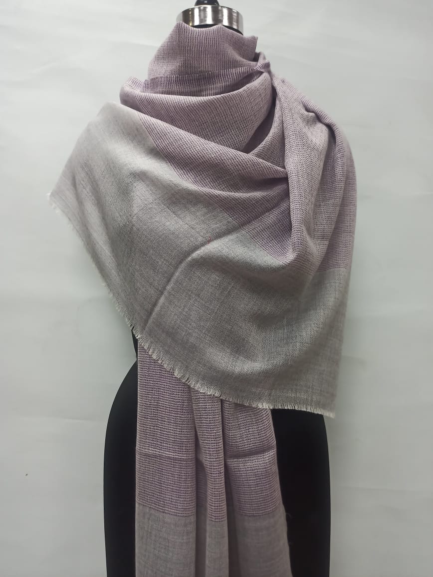 Embrace timeless sophistication with this Lavender Grey Wool Natural Border Pashmina Shawl from Savita Shawls. Crafted with the finest wool, this elegant piece captures the soft, luxurious essence of authentic pashmina shawls. Its soothing lavender-grey hue and subtle border detailing make it a versatile accessory that pairs beautifully with both ethnic and contemporary outfits.