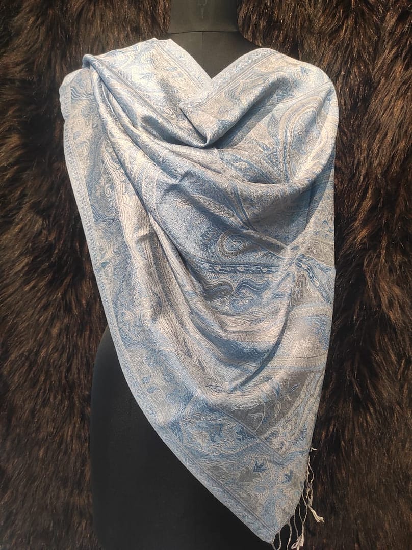 Elevate your wardrobe with this elegant light blue fringed tassel scarf from Savita Shawls, crafted with precision and finesse. Made from 100% modal, this scarf offers a feather-soft feel and a graceful drape, perfect for all-day wear. The intricate woven paisley patterns add a touch of timeless sophistication, making it a versatile accessory for any occasion. Measuring 70×200 cm, it features delicate fringed tassels that enhance its luxurious appeal. As a leading fringed tassel scarves manufacturer, Savita Shawls is committed to delivering unmatched quality and style. Add this chic piece to your collection and embrace effortless elegance.