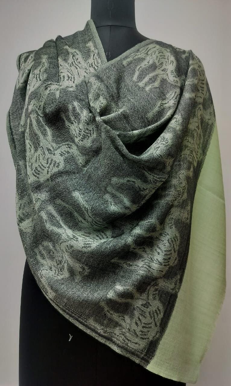 Presenting an elegant winter essential from Savita Shawls, a renowned winter wear shawl manufacturer. This exquisitely crafted shawl, sized at 70×200 cm, is woven from a luxurious blend of 85% wool and 15% silk, offering both comfort and sophistication. Designed to keep you warm in style, it features a stunning jacquard tiger motif pattern that adds a bold yet graceful touch. Perfect for formal events or cozy evenings, this winter wear shawl elevates any outfit with its distinctive design and soft texture.