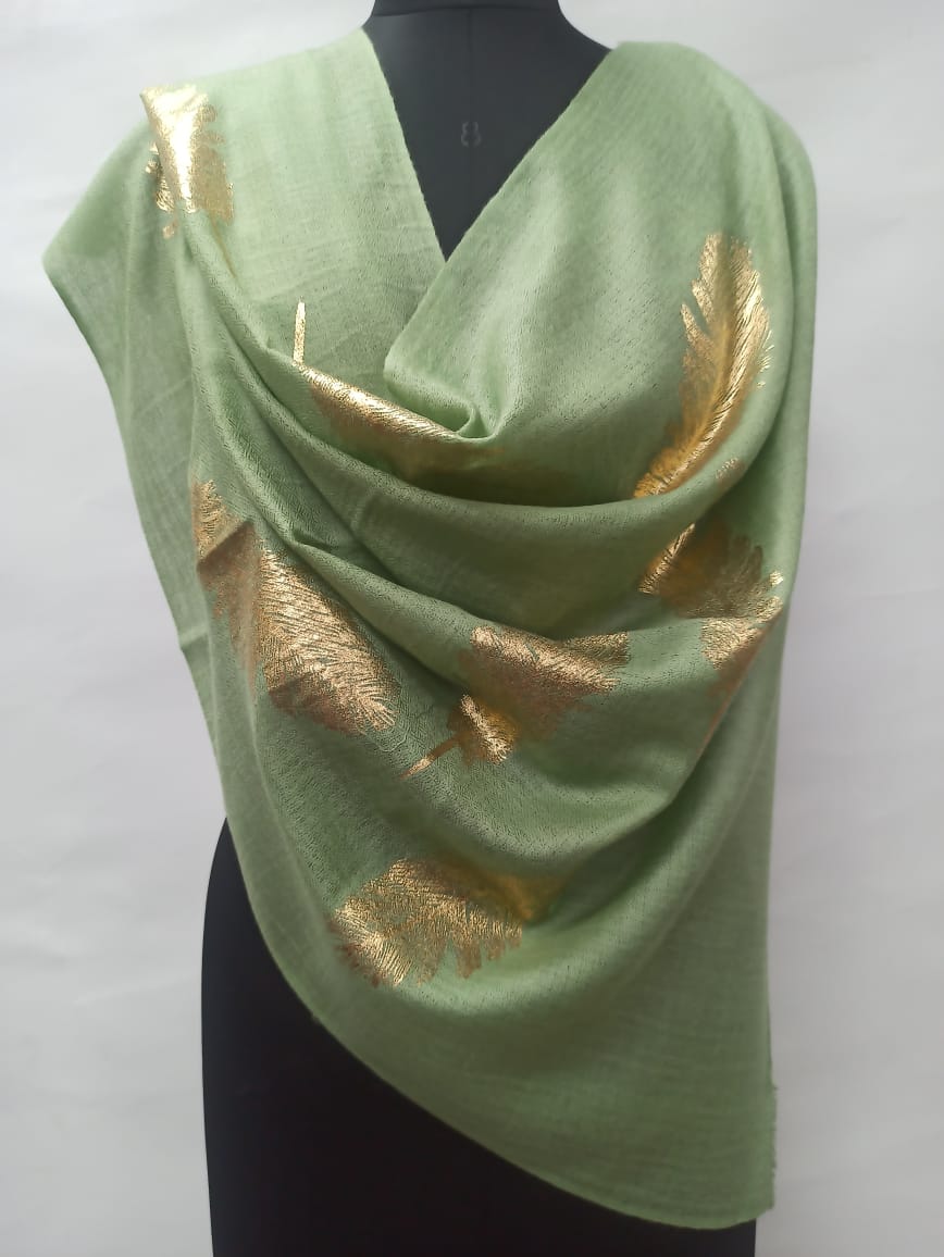 Be the first to review “Mint Green Wool Foil Print Pashmina Shawls for Women”
