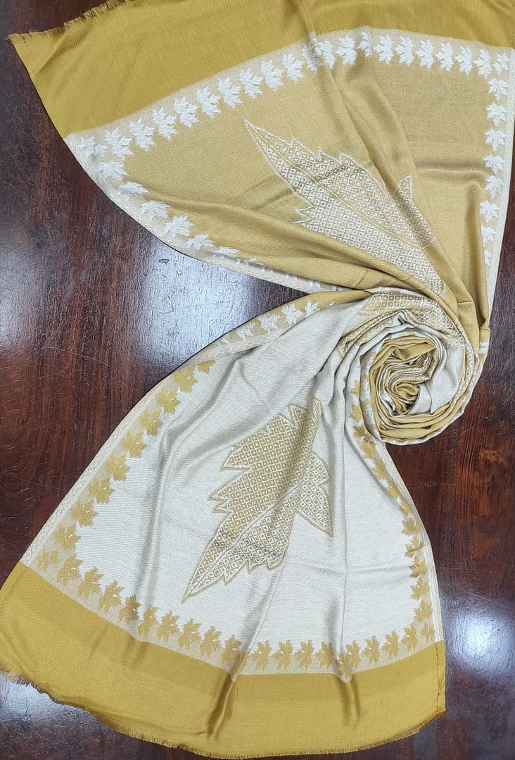 Brighten up your summer style with this elegant dual-tone scarf from Savita Shawls, a trusted summer scarves manufacturer known for blending tradition with comfort. Woven from 100% modal, this 70×200 cm scarf is soft, breathable, and perfect for warm-weather wear. The soothing beige base is beautifully complemented by mustard yellow borders and a bold leaf motif, offering a subtle yet striking aesthetic. Lightweight and easy to style, it’s ideal for casual outings, beach days, or festive layering. A perfect mix of fashion and function, this scarf reflects the refined craftsmanship and contemporary design of Savita Shawls.